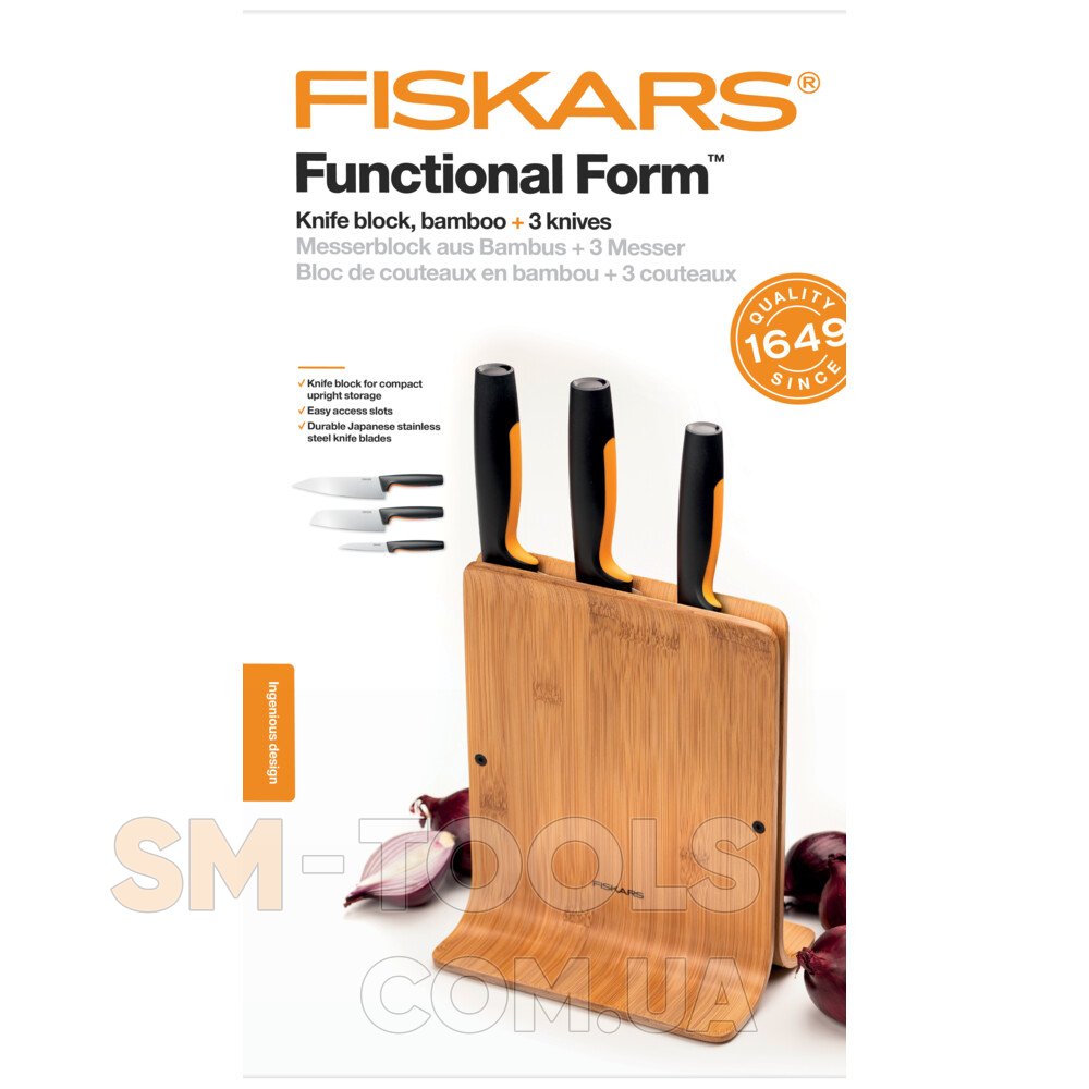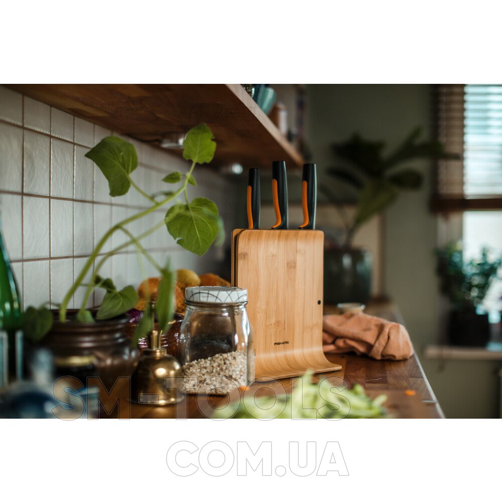 Набор ножей с бамбуковой подставкой Fiskars FF, 3 шт.