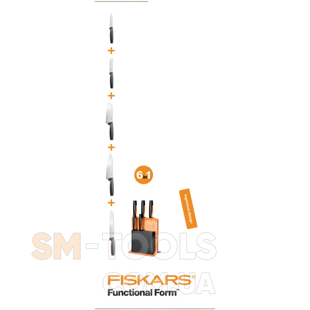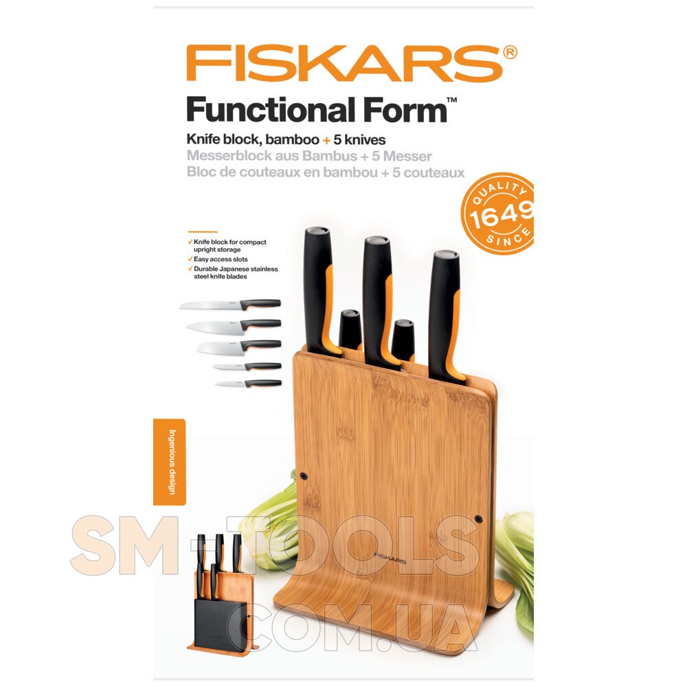 Набор ножей с бамбуковой подставкой Fiskars FF, 5 шт.