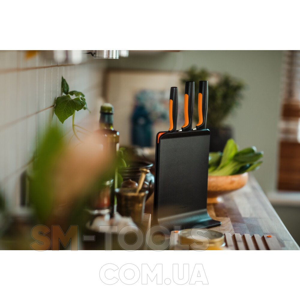 Описание Набор ножей с черной подставкой Fiskars FF, 3 шт.
