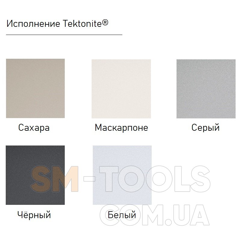 Мийки з Тектонайта виготовляють шляхом пресування під тиском 600 тонн і температурі 160⁰C. Будучи ексклюзивним матеріалом для Franke, Тектонайт надає величезну перевагу в сфері застосування синтетичних матеріалів. Завдяки її унікальній текстурі і приголомшливому, схожому на граніт зовнішньому вигляду, композитні мийки з Tectonite® доступні в різних мінімалістичний варіантах виконання і кольору. Корисно знати: Тектонайт може на 100% використовуватися в якості вторинної сировини.