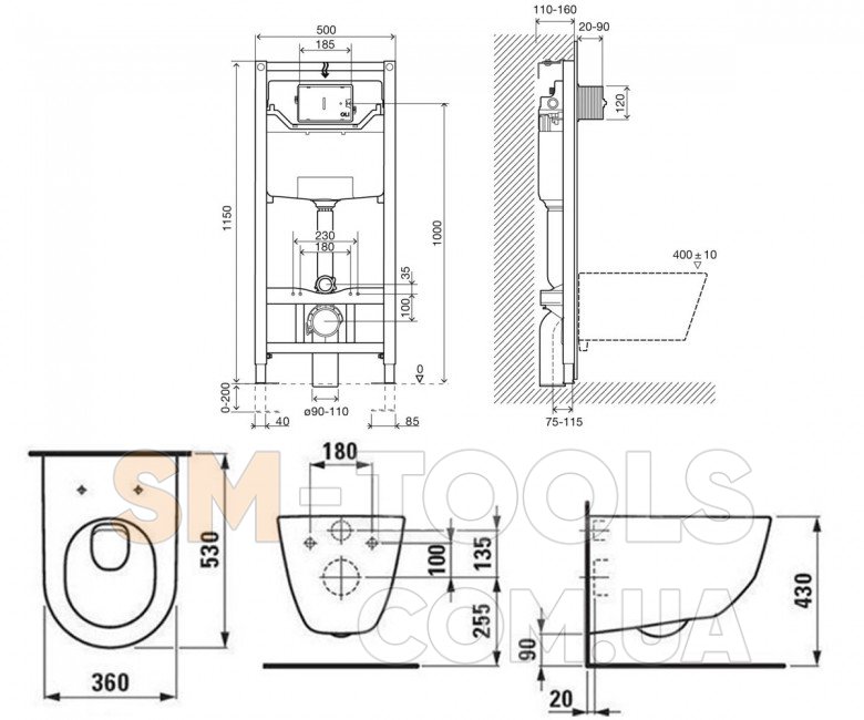 Характеристики Унітаз + Інсталяція LAUFEN PRO H8619570000001+i8120: