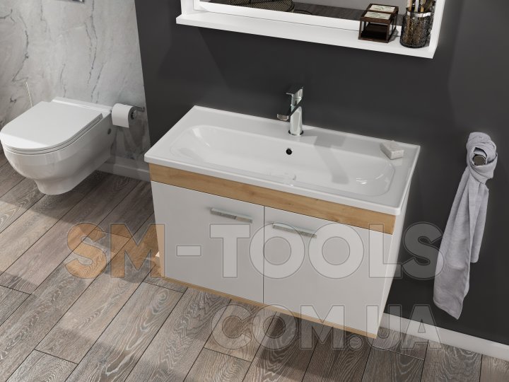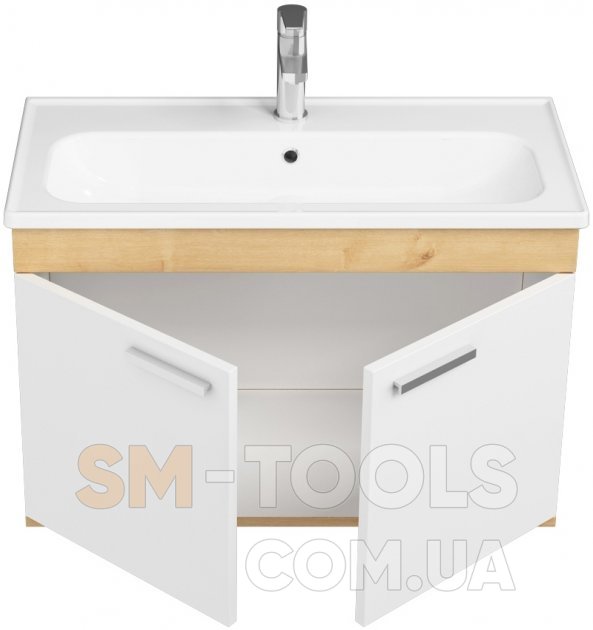 Комплект меблів для ванної кімнати First 80 від RJ — це моделі, зроблені в сучасному дизайні, що забезпечує ефектний вигляд усьому інтер'єру.