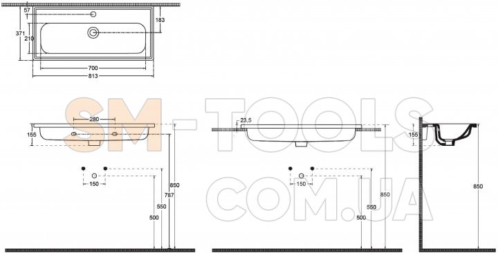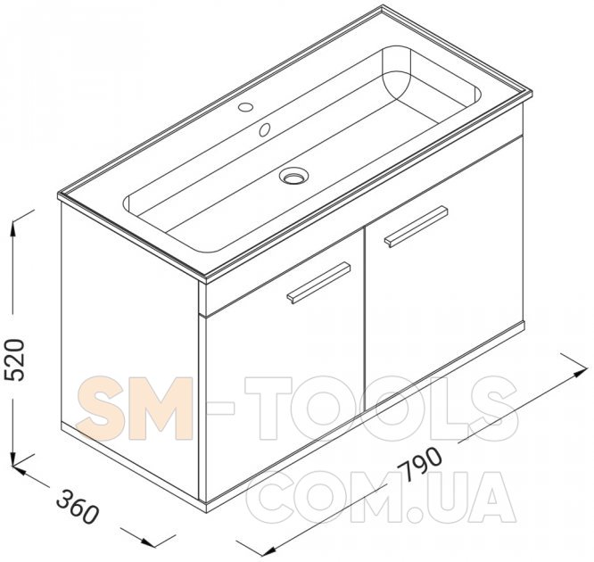 - Раковина: 81.3 х 15.5 х 37.1 см