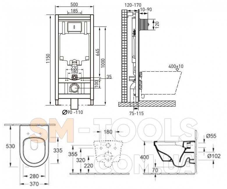 Характеристики Унитаз + инсталляция Villeroy&Boch Architectura Directflush 4694HR01+141515: