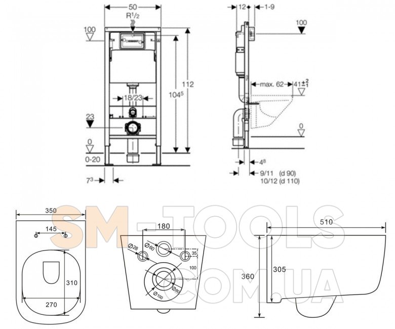 Комплектація Унітаз + Інсталяція VOLLE Hippo Rimless 13-44-202+458.103.00.1: