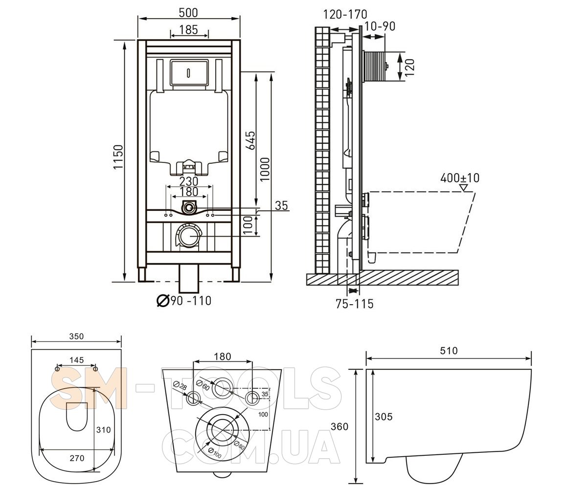 Характеристики Унітаз + Інсталяція VOLLE Hippo Rimless 13-44-202+141515: