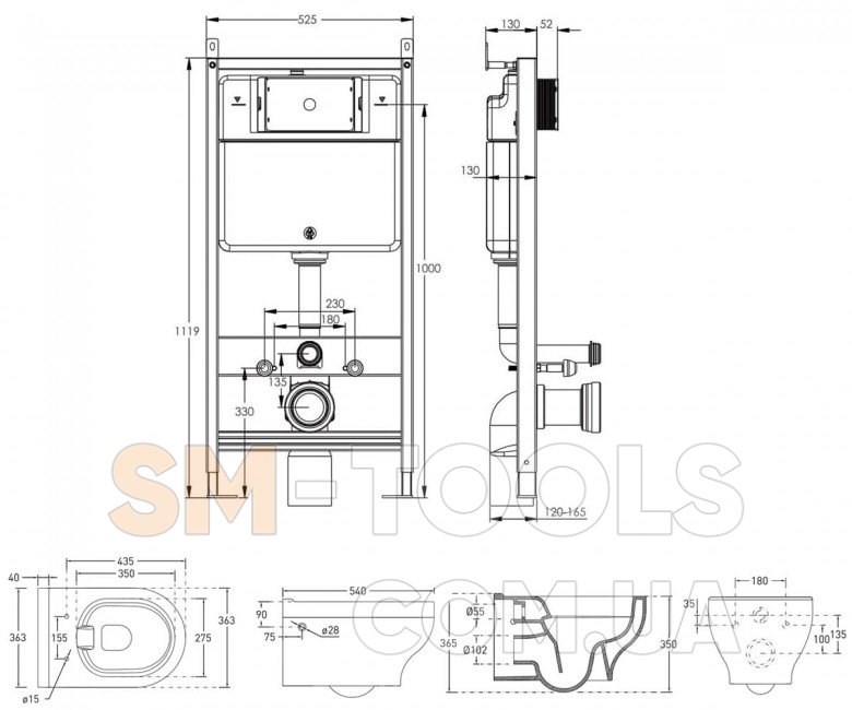 Характеристики Унитаз + Инсталляция VOLLE Virgo Rimless 13-23-455+212010: