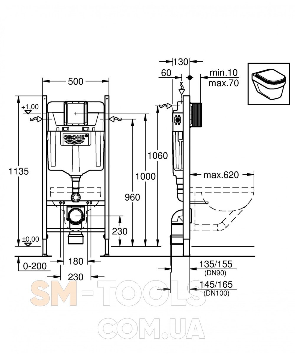 Стальной каркас рамы инсталляции GROHE Rapid SL сертифицирован при нагрузке свыше 400 кг. Инсталляционная система для подвесного унитаза скрытого монтажа обеспечивает оптимальный уровень гигиены и простоту уборки ванной комнаты.