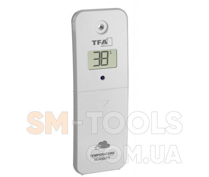 Наружная температура и влажность определяются радиопередатчиком и отправляются на станцию с дальностью действия до 100 м (на открытом воздухе), внутренний датчик измеряет микроклимат в помещении, будущая погода отображается в виде символов, и есть дополнительные функции, такие как максимальные и минимальные значения, точка росы. и настройки будильника, а также часы с полной записью даты и дня недели.