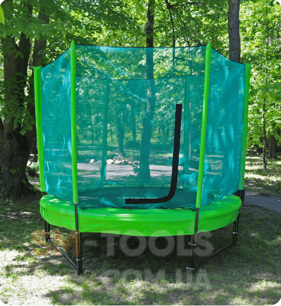 Стійки захисної сітки виконані з ПВХ тканини та наповнені спіненим матеріалом з поліетилену, що дозволяє уникнути травм і пошкоджень після контакту з металевими деталями захисної сітки батуту.