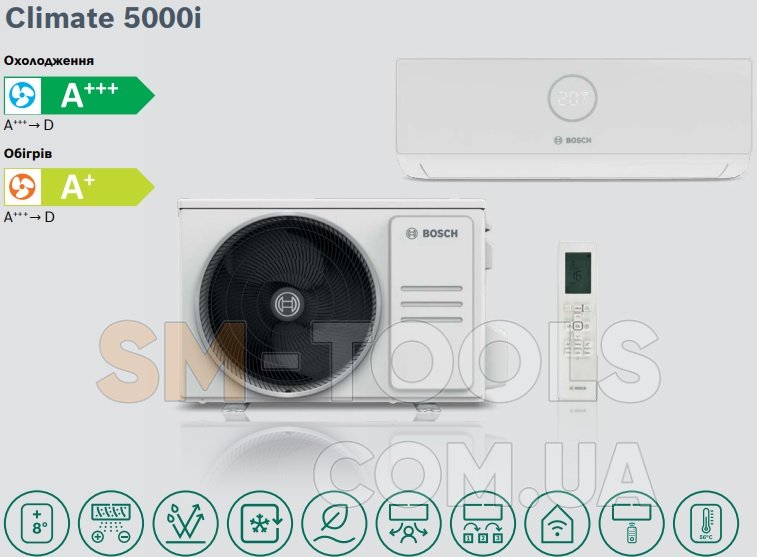 Неперевершена ефективність охолодження класу A+++ та усі необхідні функції для вашого комфорту. Стабільна робота при температурі від -15°C до +50°C. Охолодження: ErP класу енергоефективності А+++, обігрів: А+. Спеціальний іонізатор та біофільтр забезпечують високу якість повітря для гарного самопочуття. Просте управління через додаток Bosch HomeCom Easy (потрібен додатковий шлюз).