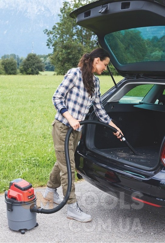 Пылесос аккумуляторная новинка 2021-го года в модельном ряду беспроводных пылесосов Einhell Power X-Change. Аккумуляторный пылесос является универсальным многоцелевым пылесосом. Вы можете использовать модель для сухой и влажной уборки (убрать разлившиеся жидкости), а также для работы вместе с электроинструментом Einhell. Пылесос отлично очищает любую поверхность. Прочный резервуар из пластика имеет емкость 15 л (в поставку включен мешок сбора пыли). Для легкой маневренности беспроводной пылесос Einhell TC-VC 18/15 Li-Solo оснащен четырьмя колесиками, а на корпусе встроены держатели для принадлежностей.