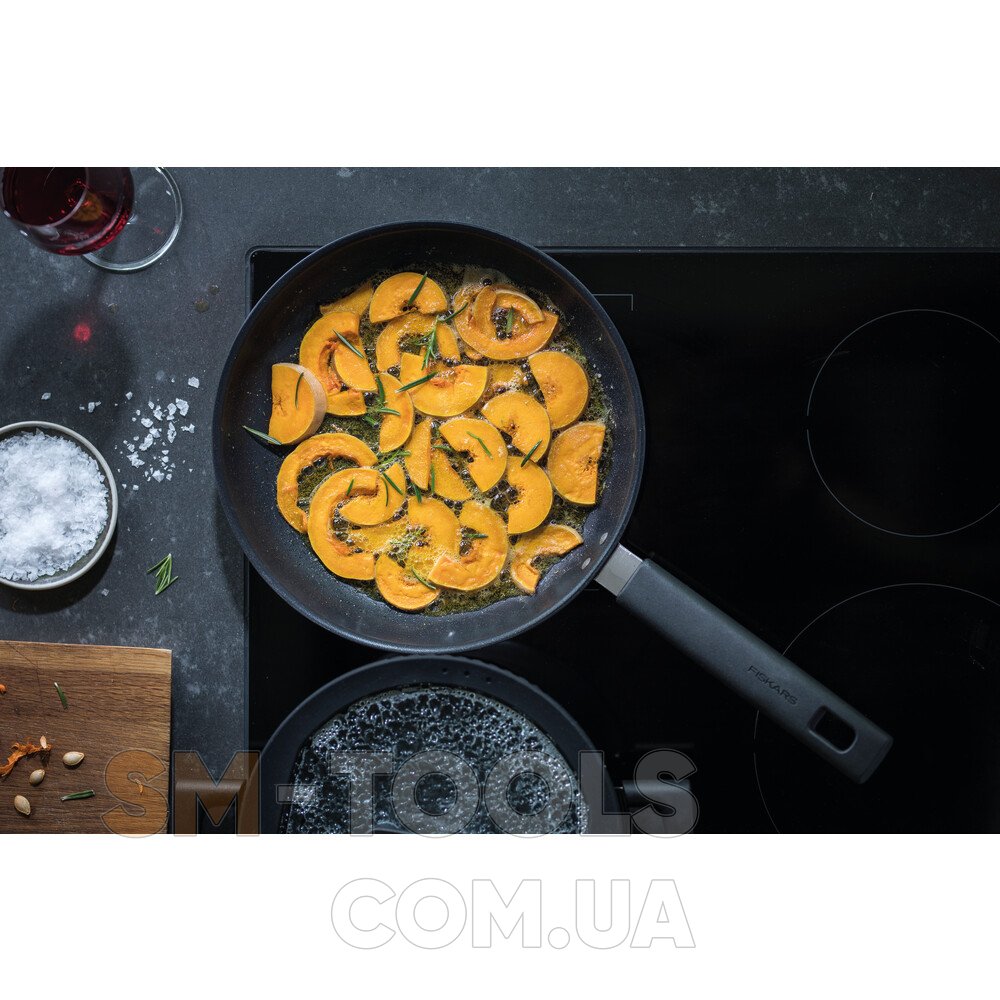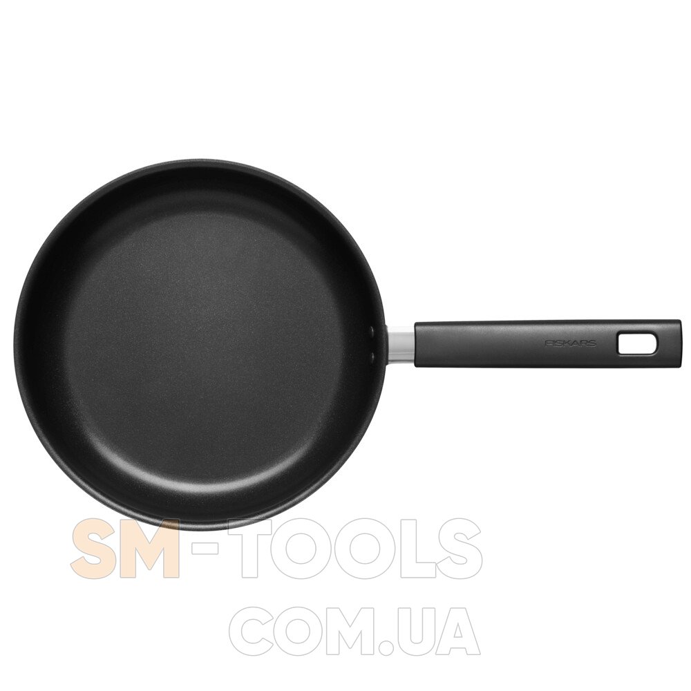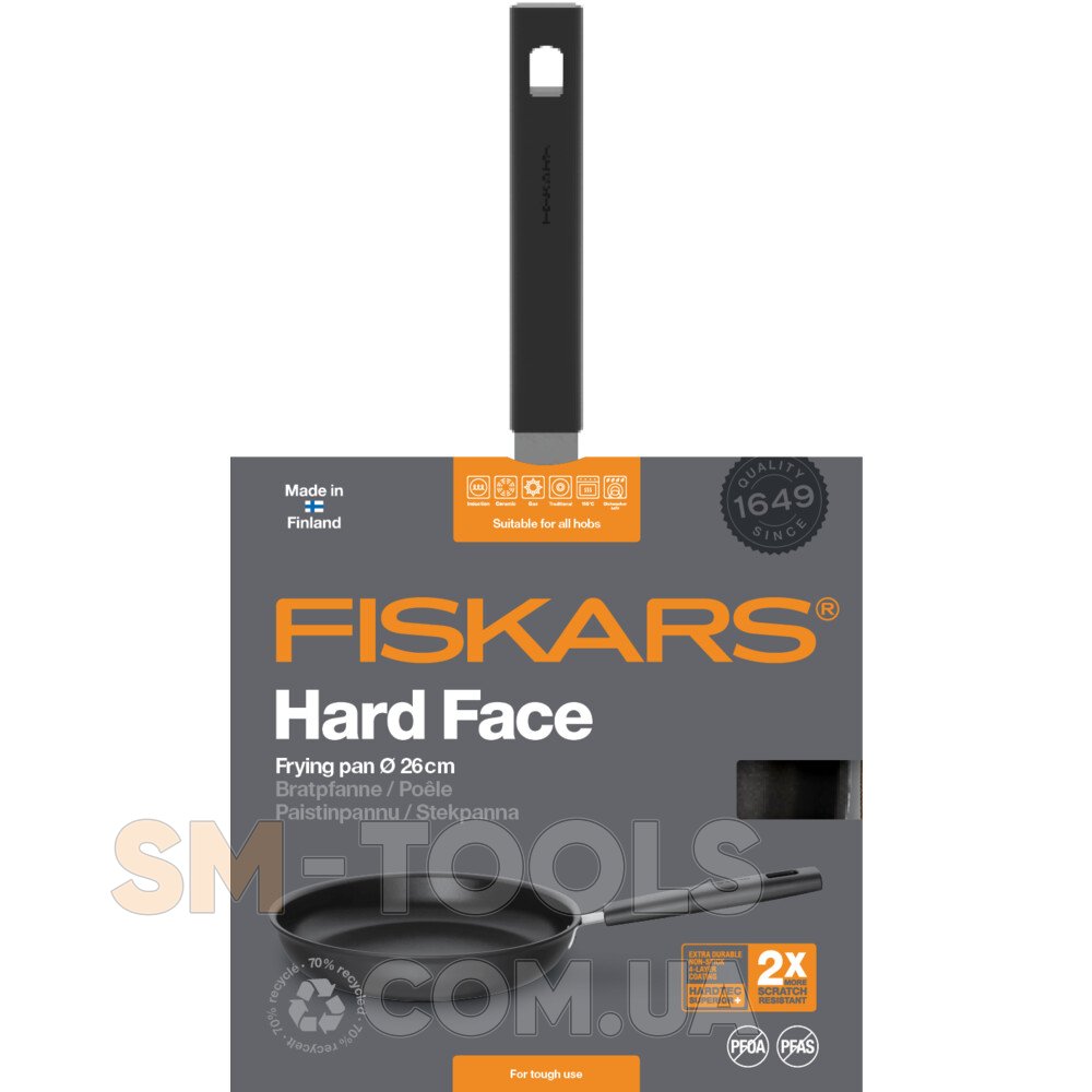 Сковорода Fiskars Hard Face з діаметром 26 см, внутрішнім антипригарним покриттям Hardtec Superior і корпусом з алюмінію.