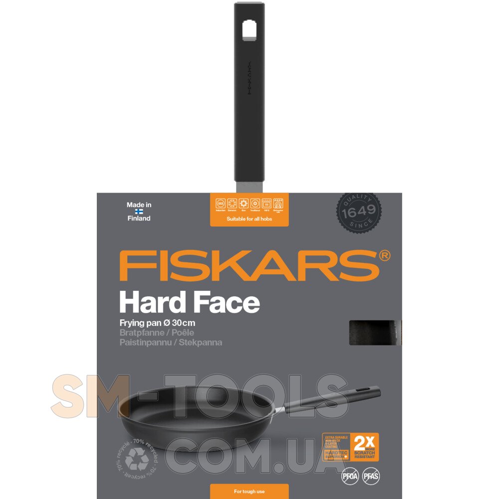 Сковорода Fiskars Hard Face з діаметром 30 см, внутрішнім антипригарним покриттям Hardtec Superior і корпусом з алюмінію.