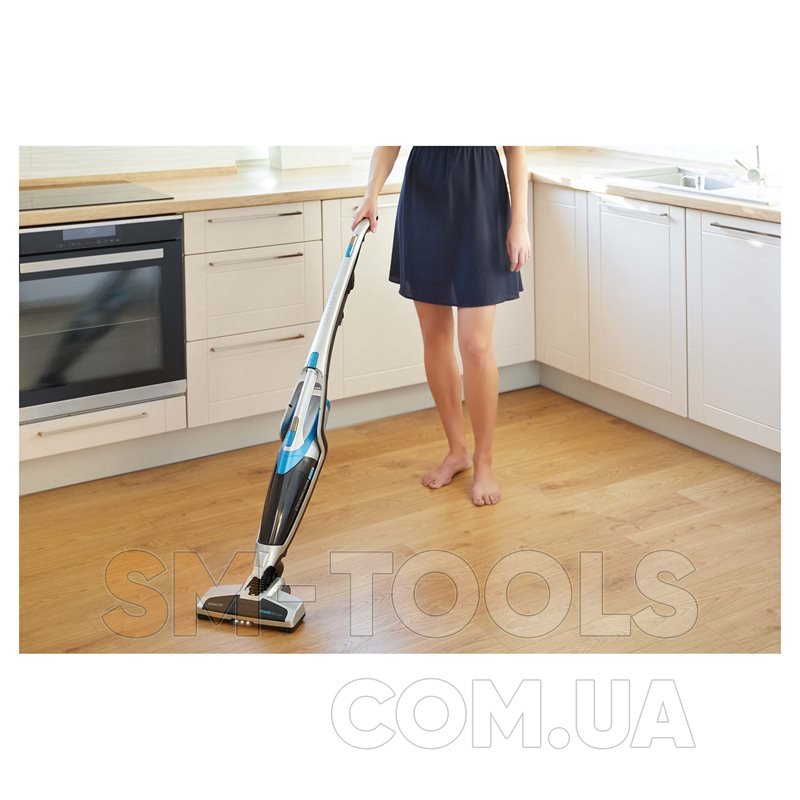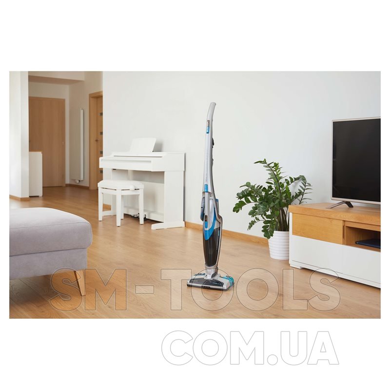 Бездротовий вертикальний пилосос «три в одному», зі шваброю, зі знімною ручною частиною. Повна свобода руху без кабелю живлення. Легкий, тихий і простий у використанні пилосос пропонує швидке і просте рішення для щоденного прибирання всіх типів поверхонь, включаючи прибирання підлоги з твердим покриттям.