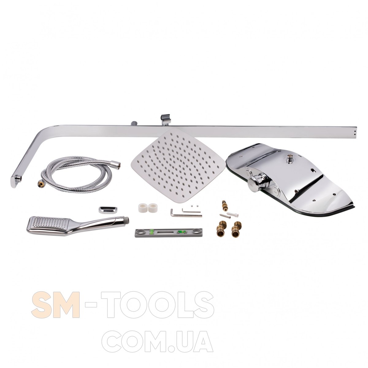 Душевая система qtap 57106vknc-эстетическое и практическое решение в одном изделии. она изготовлена из качественной латуни и прочного пластика, которые не подвержены коррозии. система выполнена с хромированной глянцевой поверхностью, оборудована стильным смесителем-полкой из закаленного стекла, а так же двумя видами душе-ручным и верхним. переключение между потребителями осуществляется с помощью кнопок на корпусе смесителя. изделие станет ярким акцентом в интерьере.
