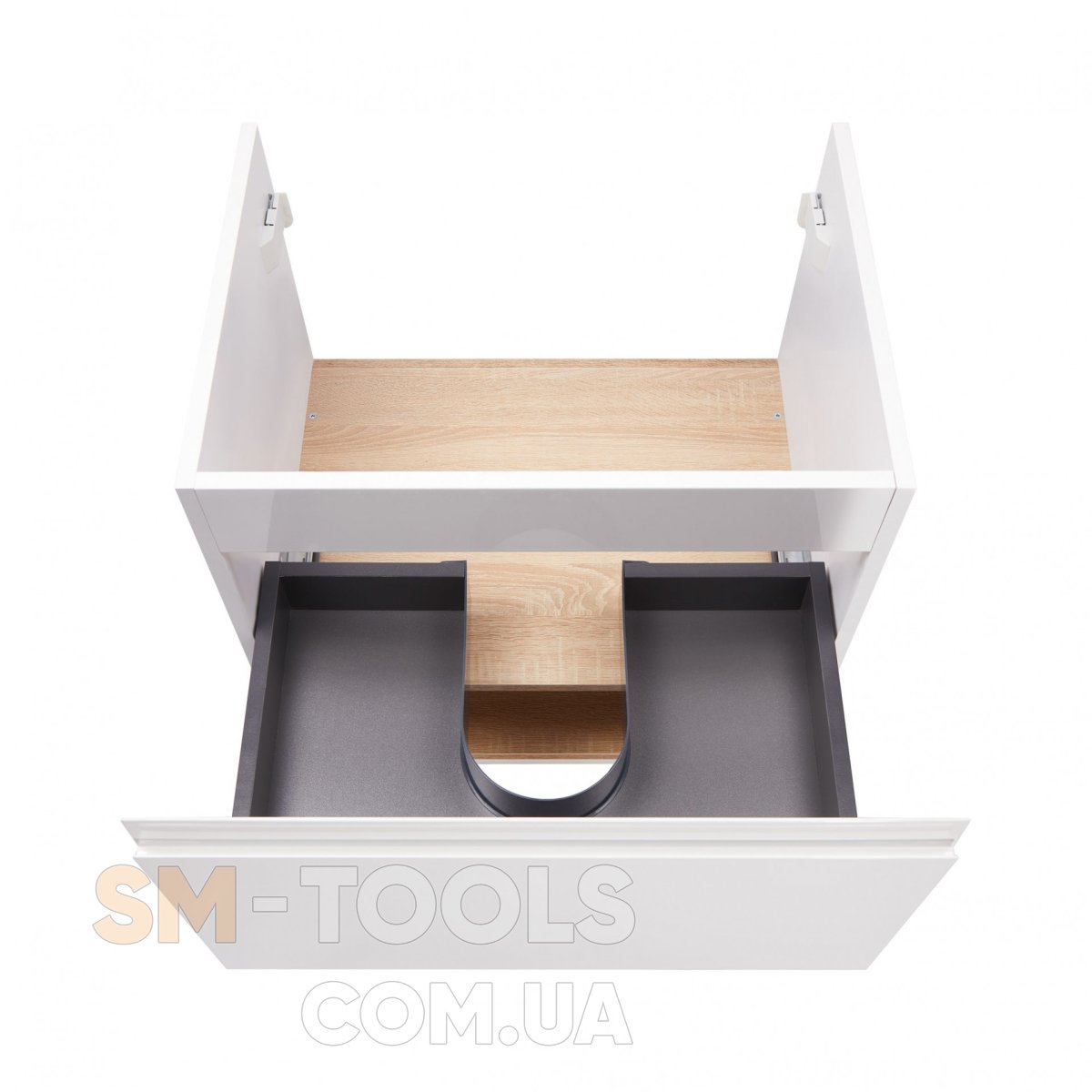 Підвісна тумба qtap robin qt1374tpв6001wwo виконана з отвором під сифон. корпус тумби виготовлений з дсп, з двошаровою ламінацією білого кольору, фасадна частина з мдф з глянцевим покриттям. виріб оснащений зручним і містким висувним ящиком з механізмом доводчика, а так само стильною полицею кольору білого дуба. тумба виконана в елегантному лаконічному стилі і впишеться в дизайн будь-якої ванної кімнати. завдяки підвісній конструкції прибирання приміщення не завдасть зайвого клопоту.