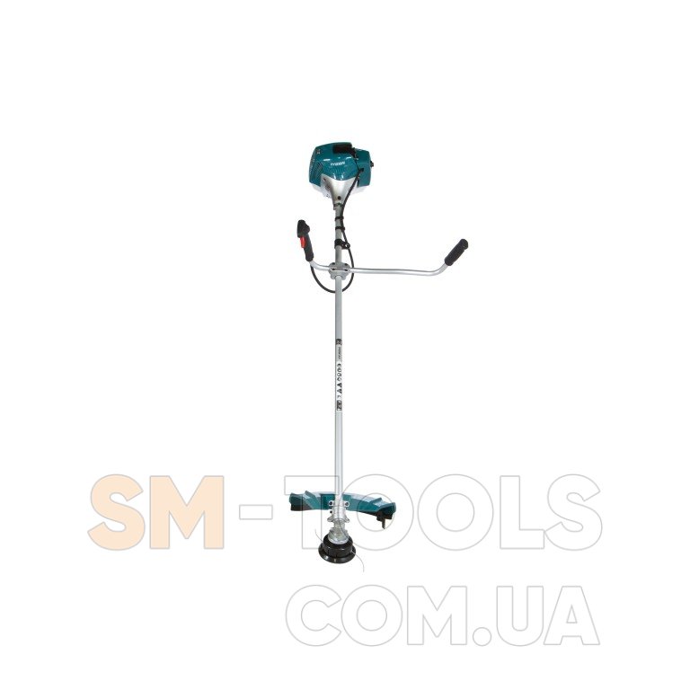 В качестве режущего элемента можно использовать леску или нож. Коса оснащена надежным двигателем, системой легкого запуска Easy start, системой гашения вибрации, велосипедной рукояткой, редуктором с пониженным уровнем шума. Разборный вал позволяет компактно сложить инструмент для его хранения. Защитный кожух обеспечит безопасность оператора при работе. Наличие наплечного ремня способствует распределению погрузки между руками и спиной пользователя.