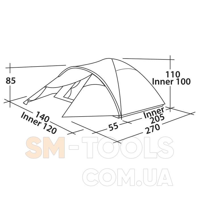 - Регулируемые вентиляционные окна расположены во фронтальной части и вверху палатки.