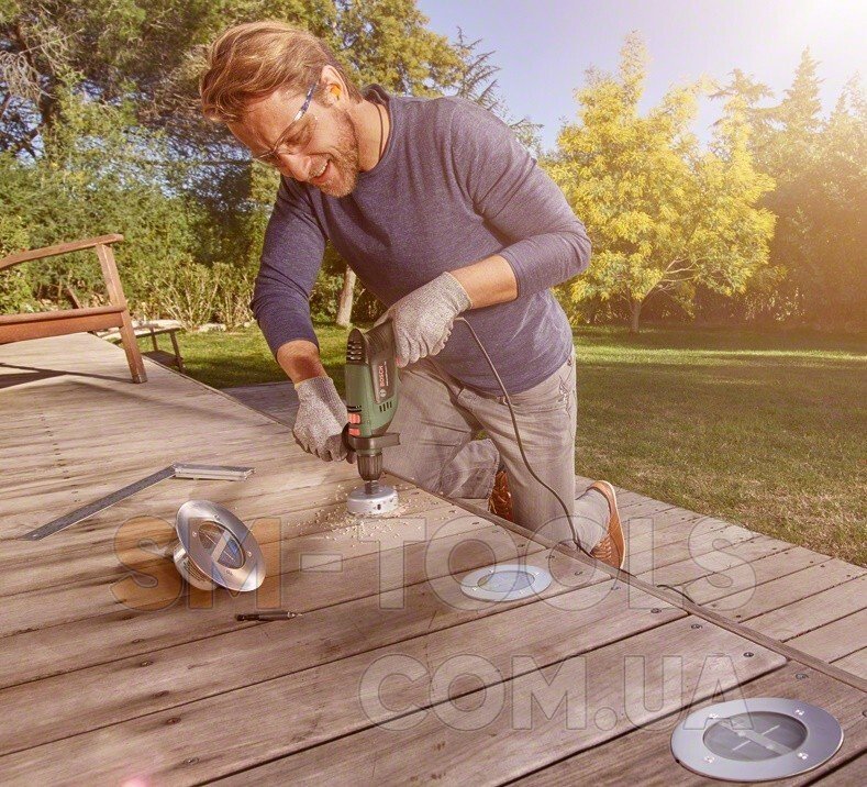 - Регулируемый ограничитель глубины позволит сверлить отверстия одинакового размера.