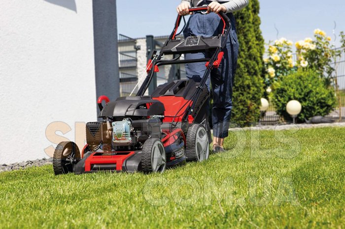 Газонокосилка оснащена одноцилиндровым 4-х тактным OHV двигателем с воздушным охлаждением имеет мощность 3 кВт/4,1 л.с, объемом 173 куб.см., а также профессиональной трансмиссией с зубчатыми передачами, рассчитанной на высокий крутящий момент и дающей хорошую производительность , на длительный срок службы газонокосилки