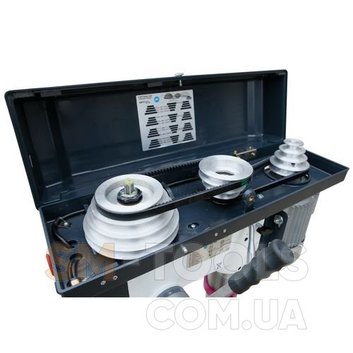 Защитный кожух приводного ремня оснащен предохранительным выключателем. В открытом положении сверлильный станок не включится.