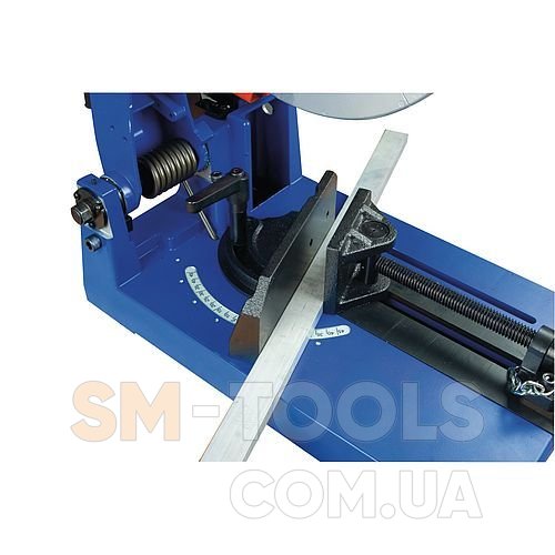 Конструкция дисковой пилы по металлу позволяет осуществлять угловые резы за счет поворота губок тисков. Диапазон угловых резов вправо 45°, влево 39°.