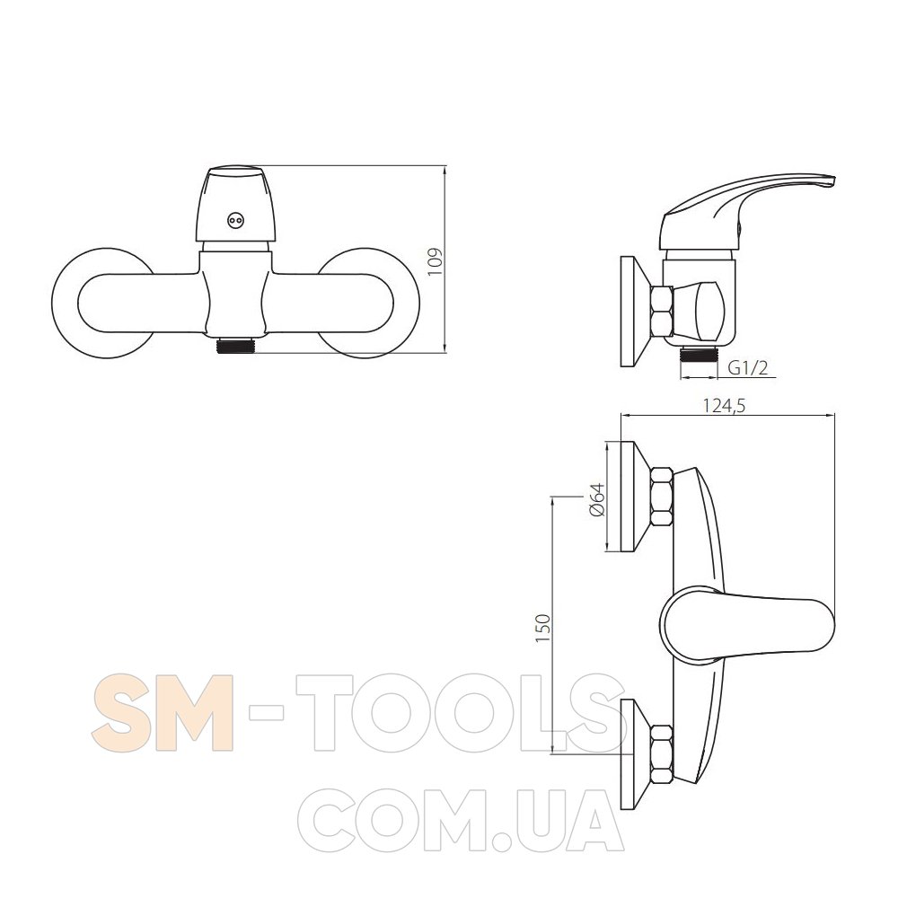 - нижний отвод для подсоединения душевого шланга под диаметр 1/2
