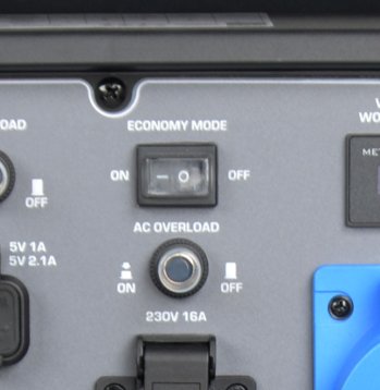 Удобное расположение всех функций: многофункциональный LED-дисплей (счетчик моточасов, вольтаж, частота), сигнализирующие о рабочем режиме индикаторы контроля состояния генераторной установки, срабатывание автомата защиты при перегрузке или коротком замыкании, о низком уровне масла, кнопка Reset для перезагрузки системы контроля и восстановление подачи напряжения, два USB-выхода (5B/1A, 5B/2.1A), типовая автомобильная розетка 12В, что дает возможность подключения широкого спектра автомобильных устройств, гаджетов и зарядки аккумулятора, 230В розетки и клемма заземления.