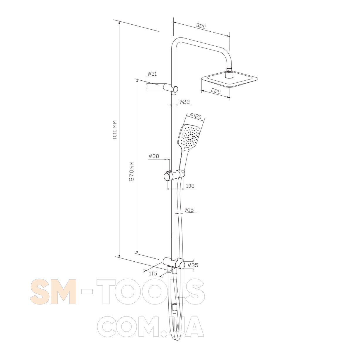 Удобство использования: штанга длиной 1010 мм позволяет установить душ на комфортной для вас высоте, а широкий диаметр лейки 120 мм наиболее оптимален для проведения водных процедур
