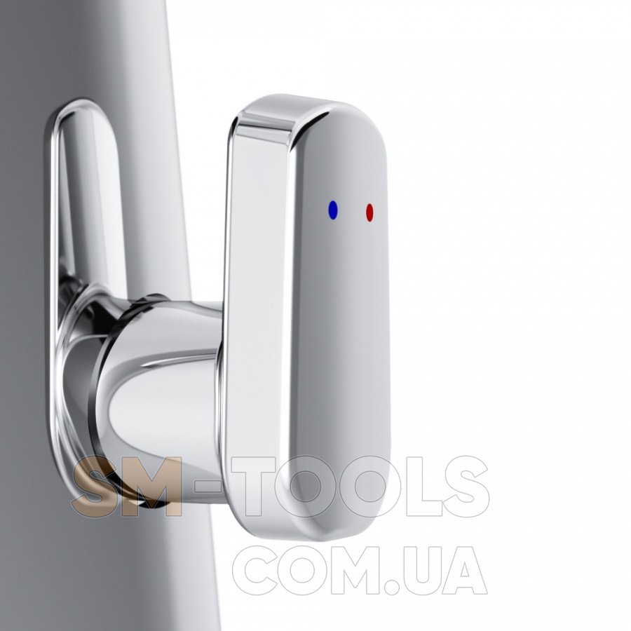 Лаконичный вид, сохраняющий высокую функциональность: ручка регулировки струи расположена на самом смесителе, что упрощает ежедневное использование продукта