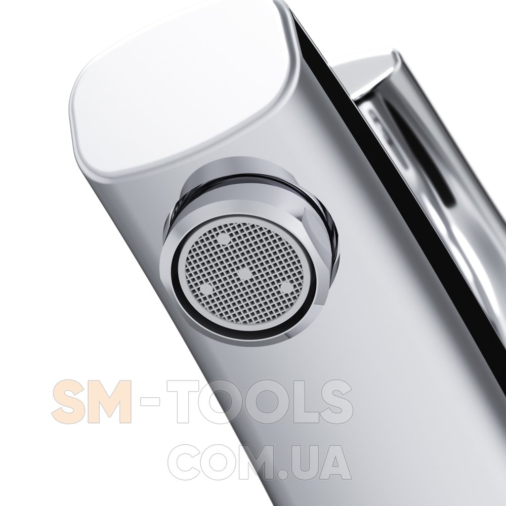Функции удобства использования: оптимальный угол наклона аэратора и насыщение воды воздухом обеспечивает отсутствие брызг.