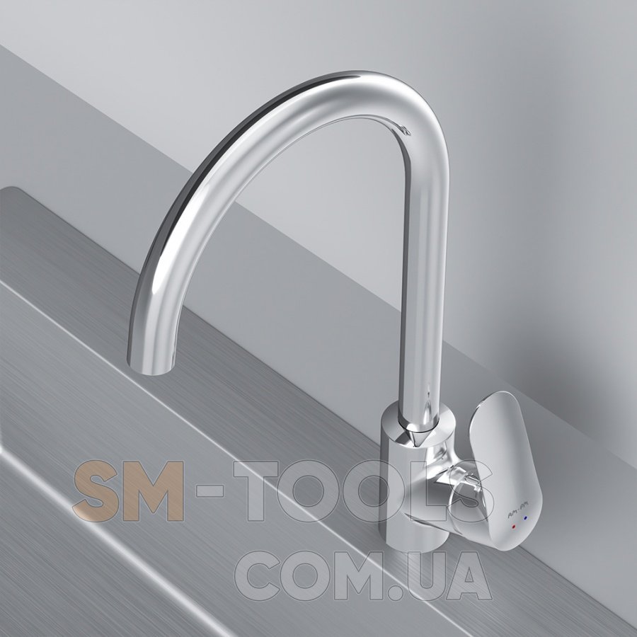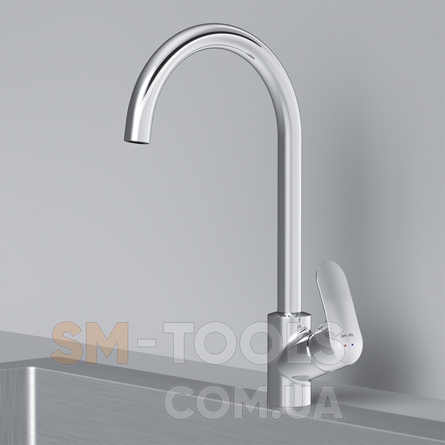 Кухонный смеситель АМ.РМ со встроенным каналом для питьевой воды успешно совмещает в себе два в одном. Благодаря прогрессивной технологии Fresh Boost при вращении ручки на 90 градусов, вы можете наслаждаться чистой водой из фильтра. Если Вам нужна обычная вода, смеситель управляется привычным способом. Также, конструкция, сочетающая в себе 2 в 1, экономит место и придает кухне опрятный вид без лишних элементов.