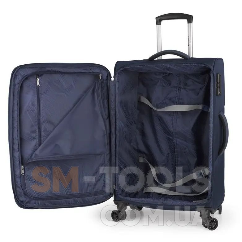 - Предусмотрена возможность увеличить полезный объем чемодана до 20%, благодаря наличию клапана, расстегнув специальную молнию по периферии чемодана.