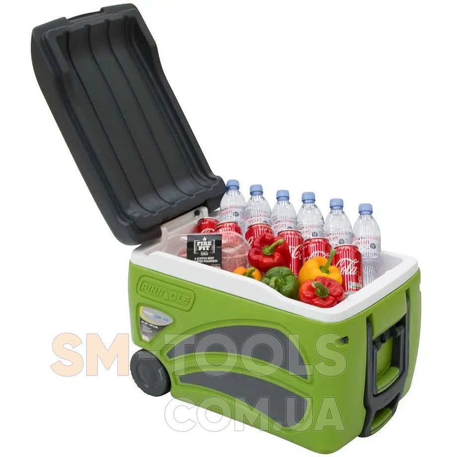 Термобокс Vango Pinnacle Wheelie 45L Green (ACRPINACL0CDZ35) - идеальное дополнение к любому выходному дню или походу, чтобы Ваши напитки и продукты оставались прохладными. В нем можно разместить 66 банок 0,33 л, поэтому Вы наверняка поместите все необходимое. Благодаря теплоизоляции пенополиуретаном, продукты внутри будут оставаться прохладными до 100 часов. Дополнительными особенностями являются две короткие ручки и одна длинная, а также прочные колеса для удобной транспортировки.