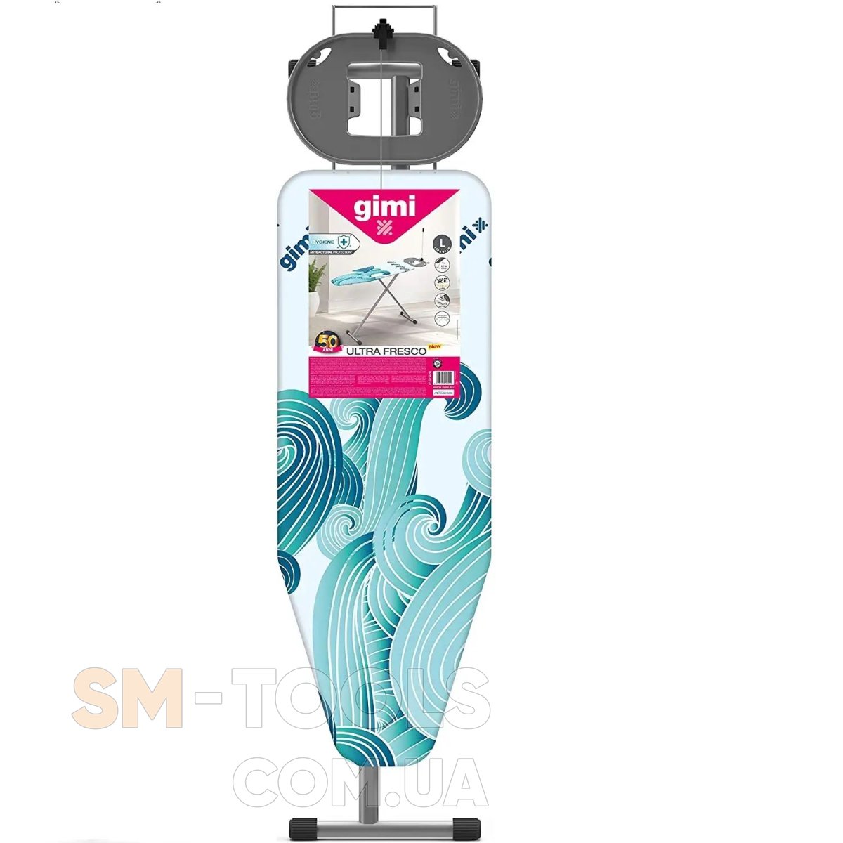 Уникальная гладильная доска Gimi Ultra Fresco - это высококачественный итальянский продукт! Уникальность серии Ultra Fresco состоит в том, что все модели данной серии укомплектованы фирменным антибактериальным чехлом. Модель соответствует не только основным европейским стандартам качества и безопасности, что подтверждается маркировкой CE, но и более строгим стандартам Германии и Франции, что подтверждается маркировкой GS TUV и NF соответственно. Данная гладильная доска оборудована подставкой для утюга с термостойкими силиконовыми вставками, защищающими поверхность утюга от царапин. Модель Ultra Fresco удобна и функциональна для глажки белья различных форм и размеров. В сложенном виде доска занимает минимум места, что позволяет удобно хранить ее в помещении. Гладильная поверхность доски имеет сквозную перфорацию по типу сетки. Благодаря такой конструкции, пар из-под утюга проходит сквозь саму доску, тем самым предотвращается скапливание конденсата под чехлом. Закругленное окончание доски позволяет выгладить труднодоступные места в рубашках или блузах. Чехол съемный, по мере использования его всегда можно постирать или заменить на новый. Гладильная доска, плавно и без особого усилия регулируется по высоте для максимально комфортного использования. На основания ножек одеты колпачки, предохраняющие доску от скольжения.