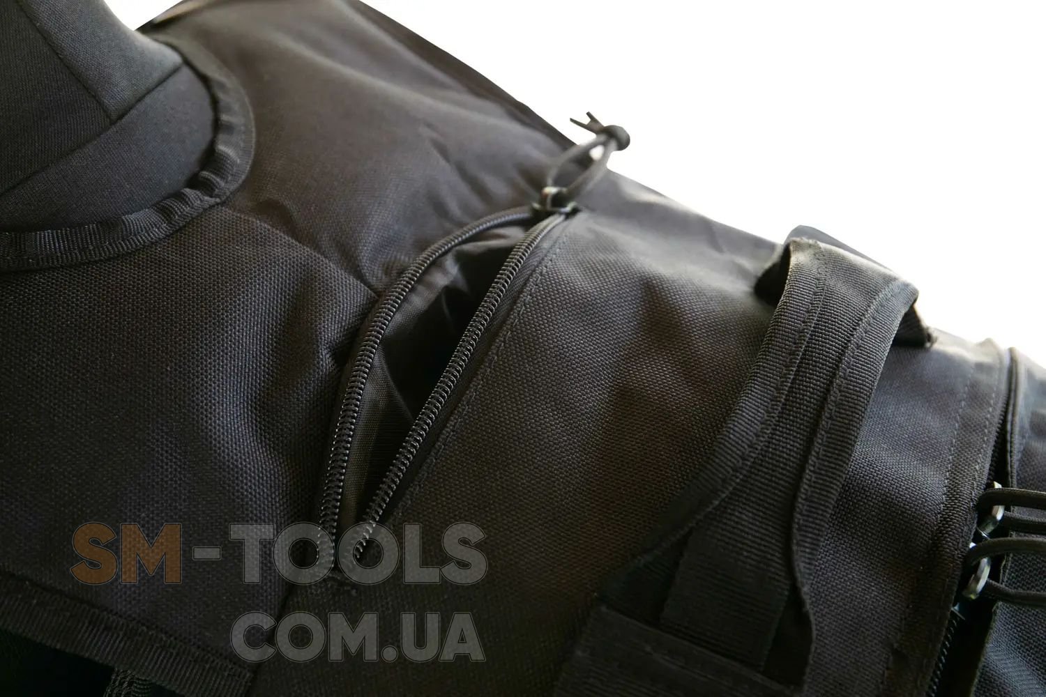 - На верхній і нижній зовнішніх кишенях нашиті панелі velcro, для кріплення патчів та ідентифікаторів.