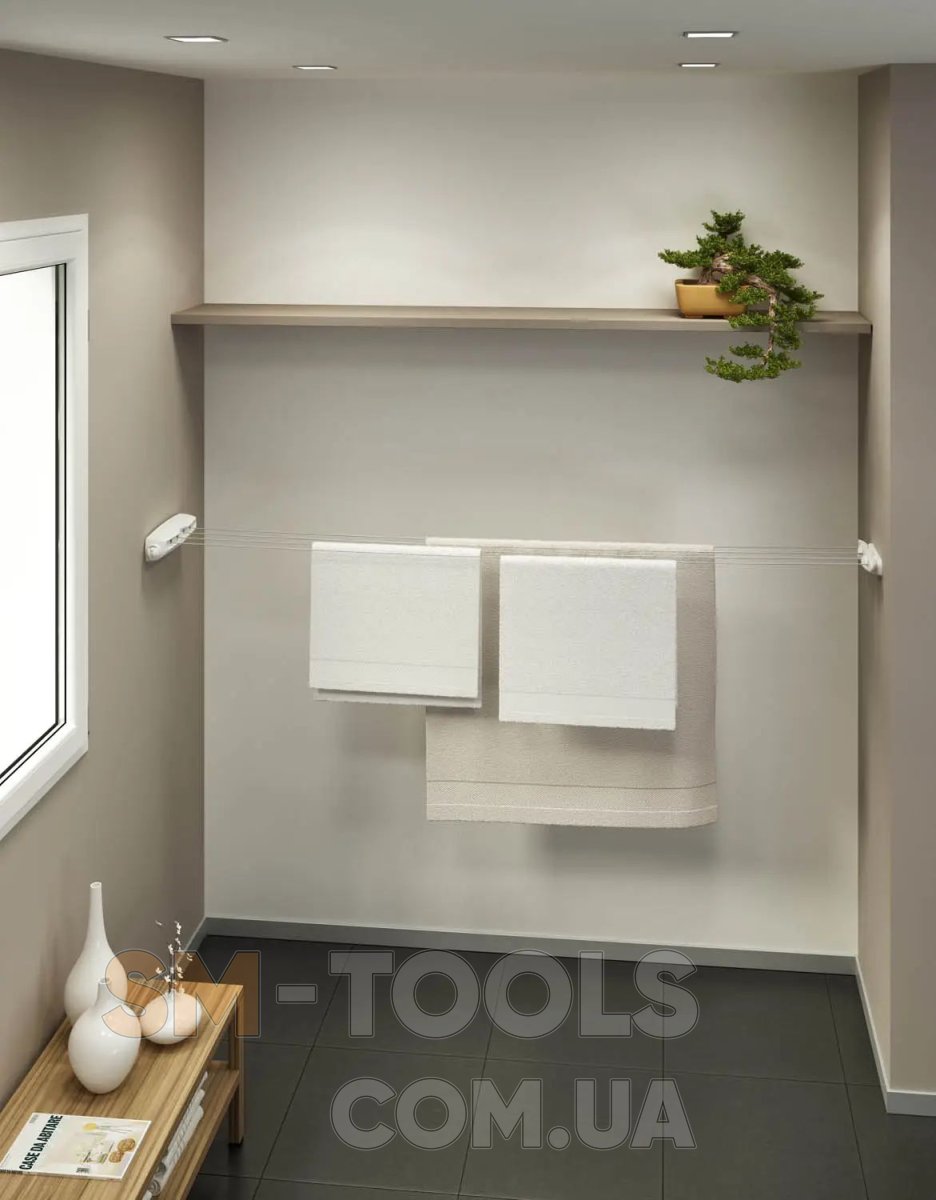 - Фиксатор длины, который предотвращает провисание веревок под весом белья.