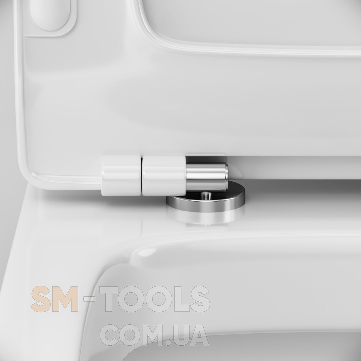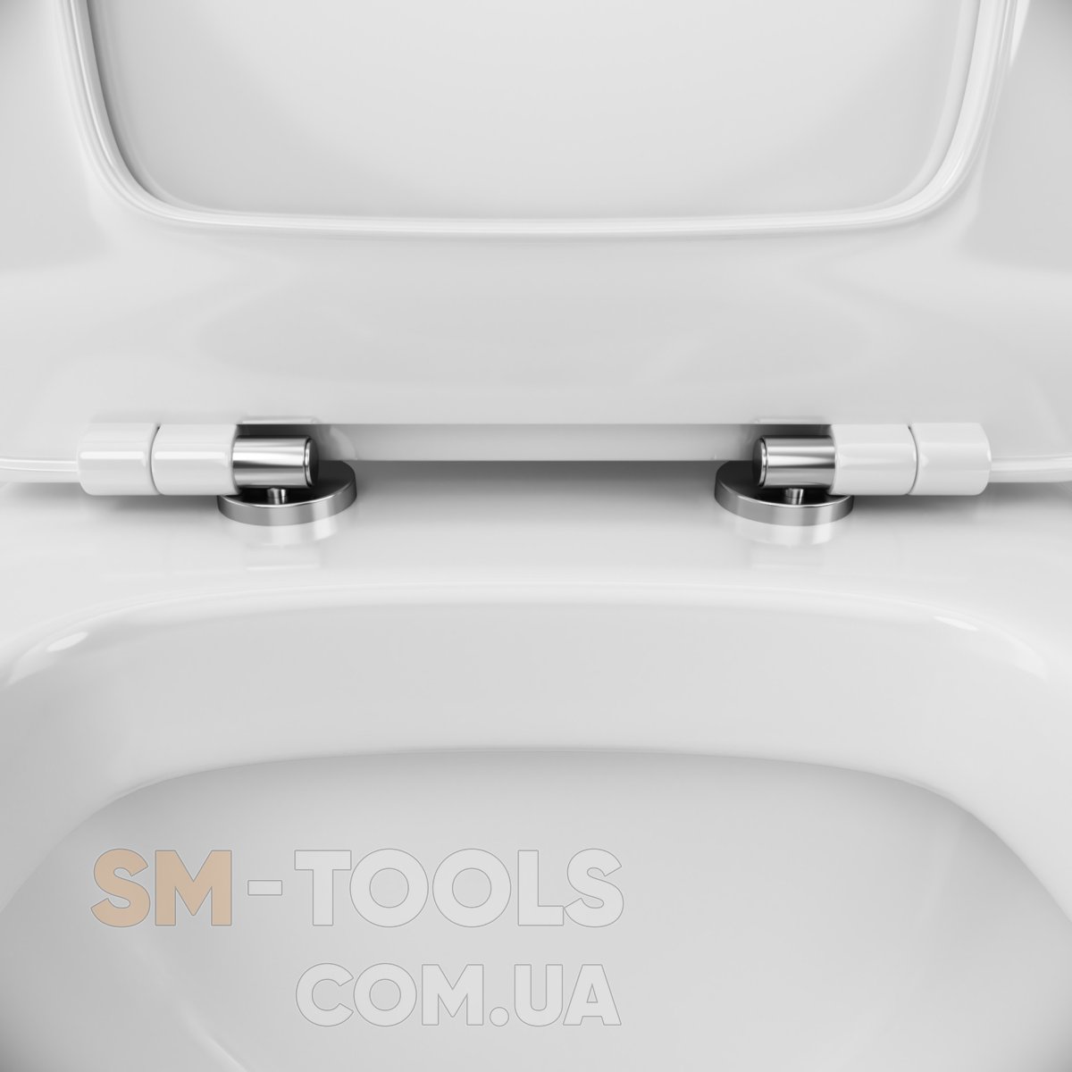 Комплектується швидкознімним сидінням з дюропласта з механізмом плавного закривання. Матеріал сидіння дюропласт, стійкий до появи подряпин, в поєднанні з кріпленнями з нержавіючої сталі гарантують довговічність сидіння. Механізм плавного опускання, розрахований на 100 000 закривань, і швидкого зняття - комфорт у використанні й легкість в догляді за сидінням і керамікою.