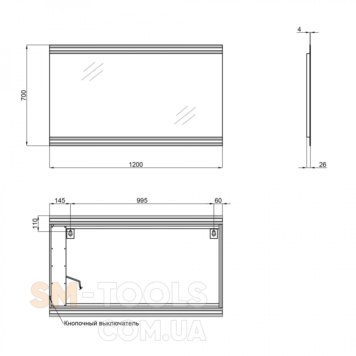 Характеристики Зеркало Qtap Mideya Classic 1200х700 QT2078250359W: