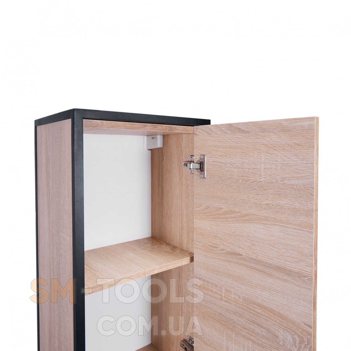 Напольный пенал Qtap Taurus 350х1750х300 Whitish oak QT2475PN175KRWO цвета белого дуба изготовлен из ЛДСП, а фасадная часть из МДФ. Изделие оснащено двумя отделениями, в которых расположены полки и вместительное белье корзина. Дверь изделия оснащена механизмом доводчика. Стальной крашеный каркас черного цвета придает пеналу оригинальный внешний вид, благодаря которому он впишется в дизайн любой современной ванной комнаты.