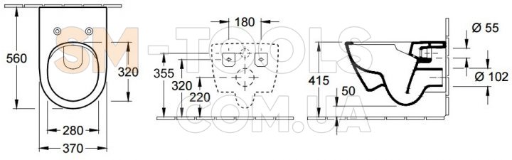 - Унітаз: 36.5 х 37.5 х 56.5 см