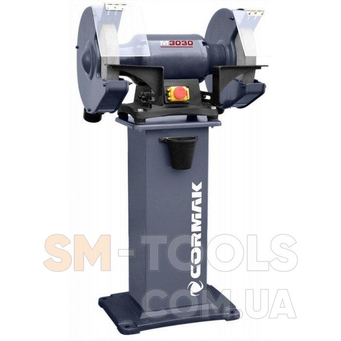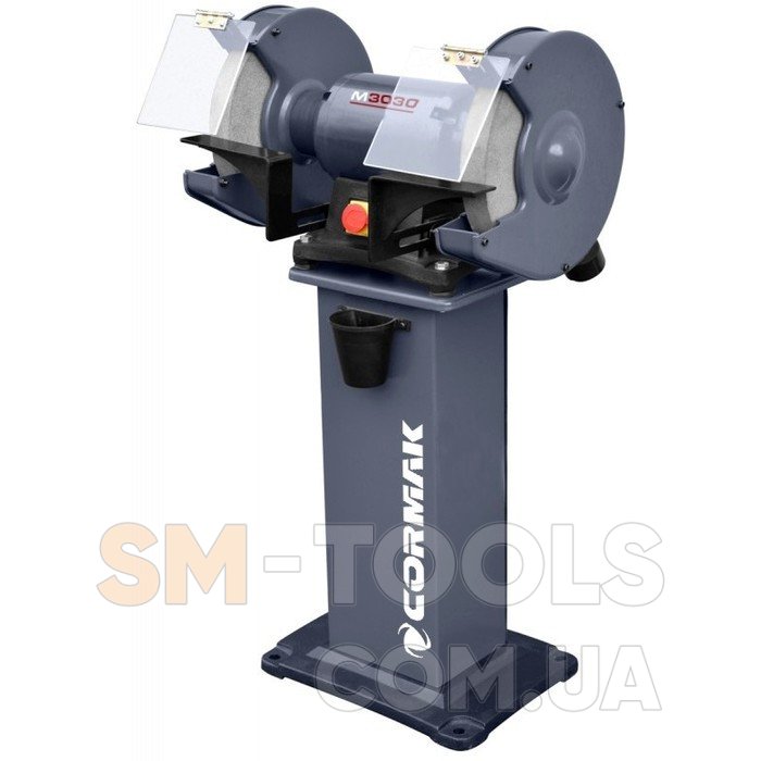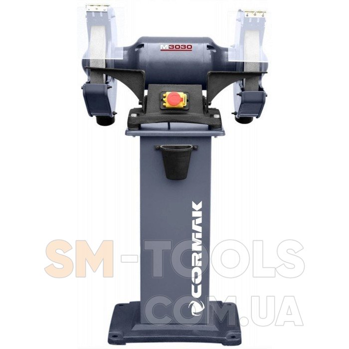 Промислова настільна шліфувальна машина оснащена двома дисками діаметром 300 мм. Стабільна і жорстка конструкція заточувального верстата Cormak M3030 забезпечує безшумну роботу без вібрації.