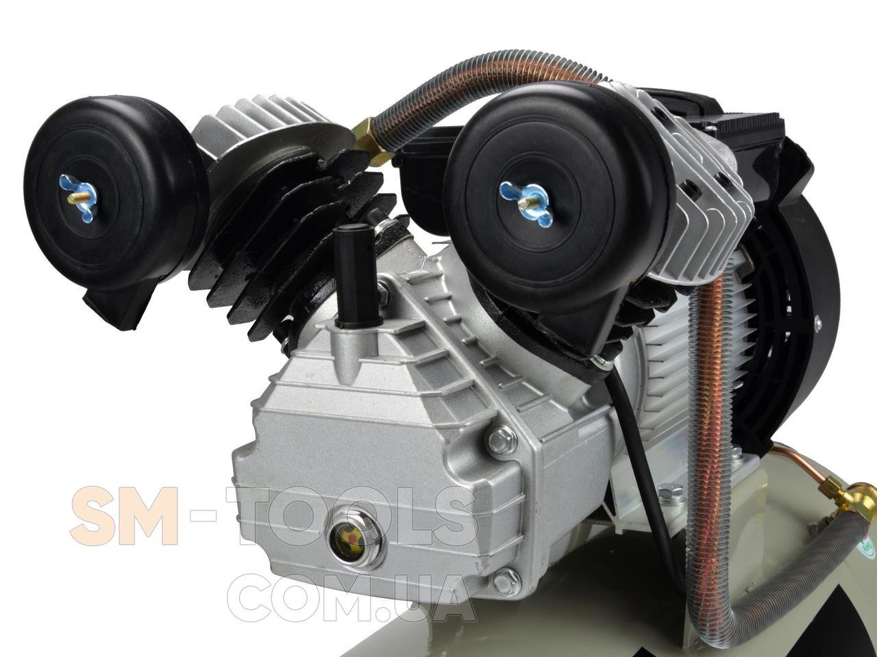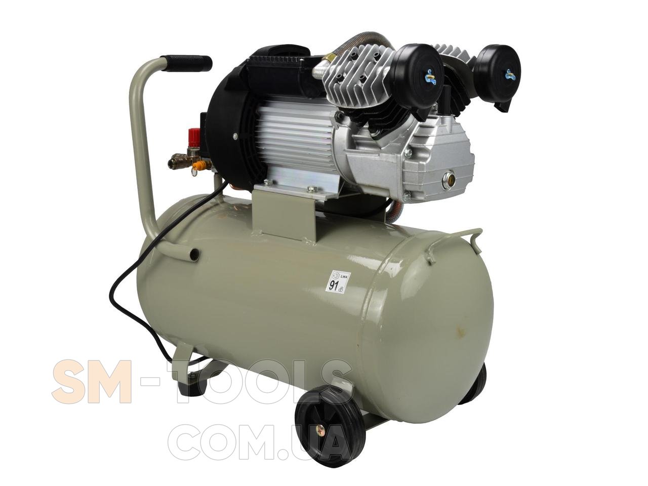 Масляний компресор з ефективним 2-поршневим двигуном V-V системою з 3 л. с. і об'ємом бака 50 літрів. Оснащений редуктором тиску, який дозволяє регулювати значення тиску в баку.
