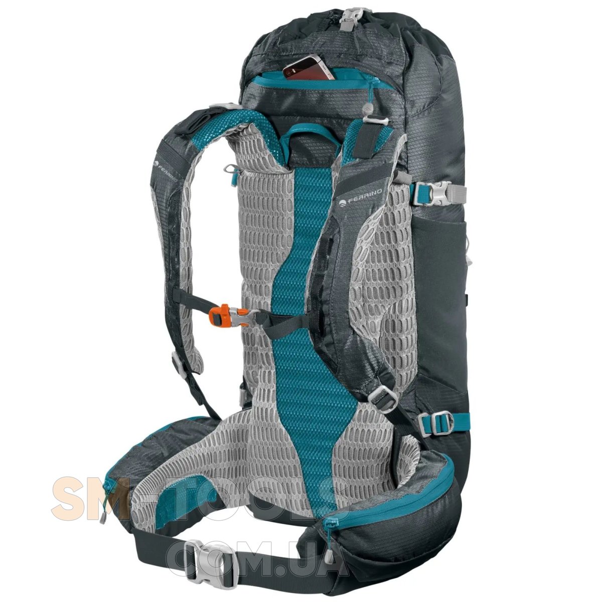 Compatible H2O Bag - данный рюкзак совместим и может быть оснащен фирменной гидратационной системой Ferrino емкостью один, два или три литра, или любой другой питьевой системой соответствующего литража. Рюкзак имеет необходимое отделение для размещения и петлю для крепления питьевой системы, а также все необходимые отверстия и зажимы для фиксации питьевого патрубка.