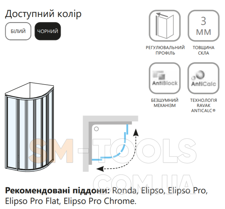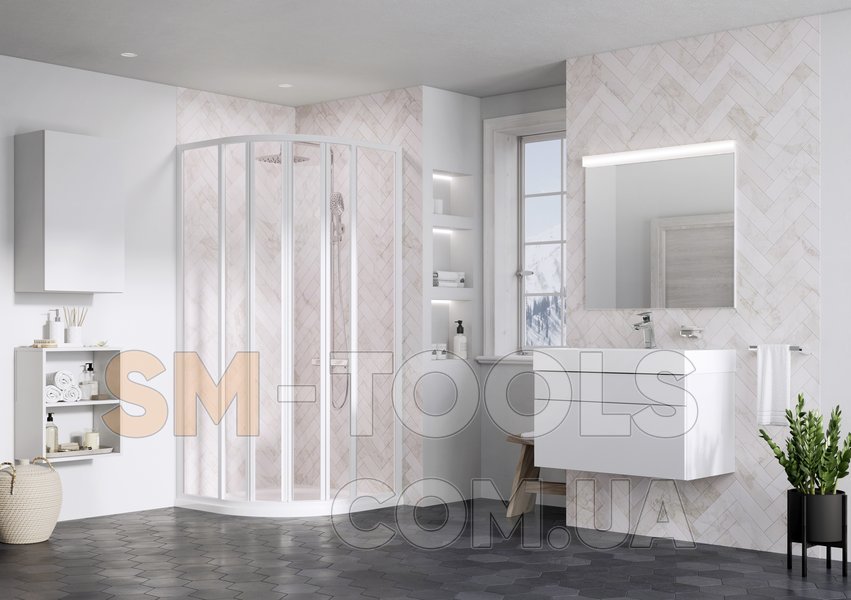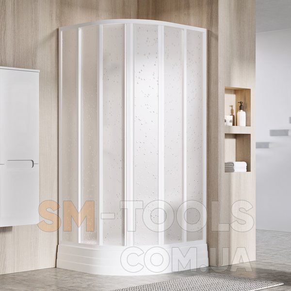 ВНИМАНИЕ! Изделие состоит из двух ровных неподвижных частей и четырех подвижных частей. С помощью регулировочных профилей NPS душевую кабину можно адаптировать к нестандартным размерам строительного проема. Радиус 500мм. Устанавливается в облицованный изразцом угол ванной комнаты на поддоны RAVAK Ronda, Elipso, Elipso Pro, Elipso Pro Flat, Elipso Pro Chrome или непосредственно на пол со встроенным душевым каналом или трапом.