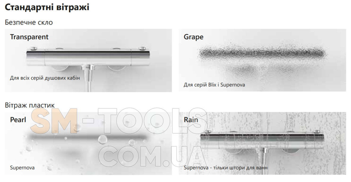 Характеристики вариантов душевых кабин Supernova SKKP6: