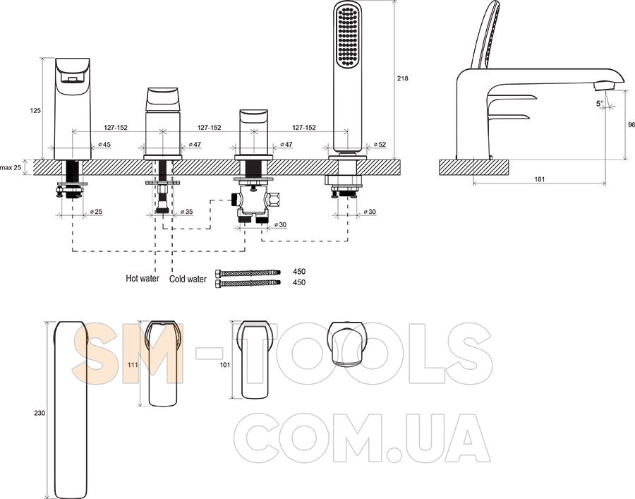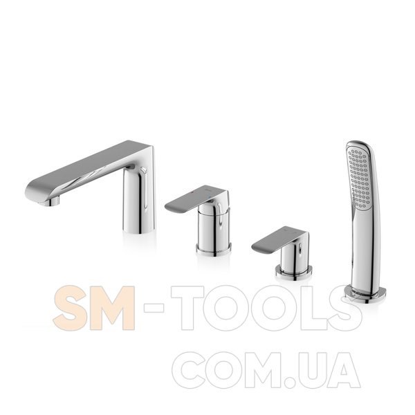 Смеситель Flat с четырьмя отверстиями подходит для установки на краю ванной. Изделие состоит из четырех согласованных по дизайну компонентов. Плавные линии излива совмещаются с потоком воды. Смеситель с плавным рычагом управления обеспечивает идеальную регулировку потока и температуры воды. Третий компонент, в свою очередь, надежно обеспечивает удобное переключение потока воды между наполнением ванны и принятием душа. В последнем отверстии скрыта модная выдвижная лейка ручного душа.