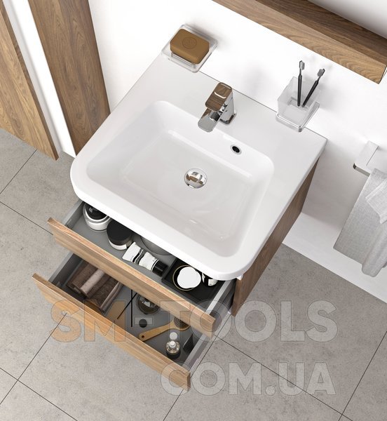 Дизайн, который вам понравится. Воспользуйтесь преимуществами двух вариантов ширины и дизайна, которые дополняют линии умывальника 10°. Внутри обеспечивает большое внутреннее пространство в двух практичных ящиках для хранения мелких предметов. Два вида декоров (глянцевый белый и темный орех) позволяют оформить ванную комнату по индивидуальному замыслу.