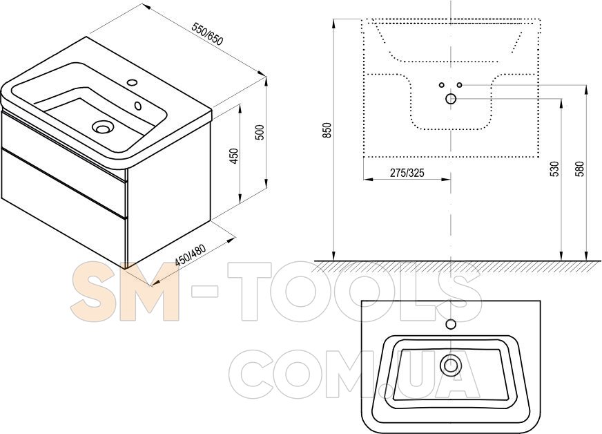 Поставляется в собранном виде. Тумба под умывальник с двумя ящиками, внутренняя высота 45 см.